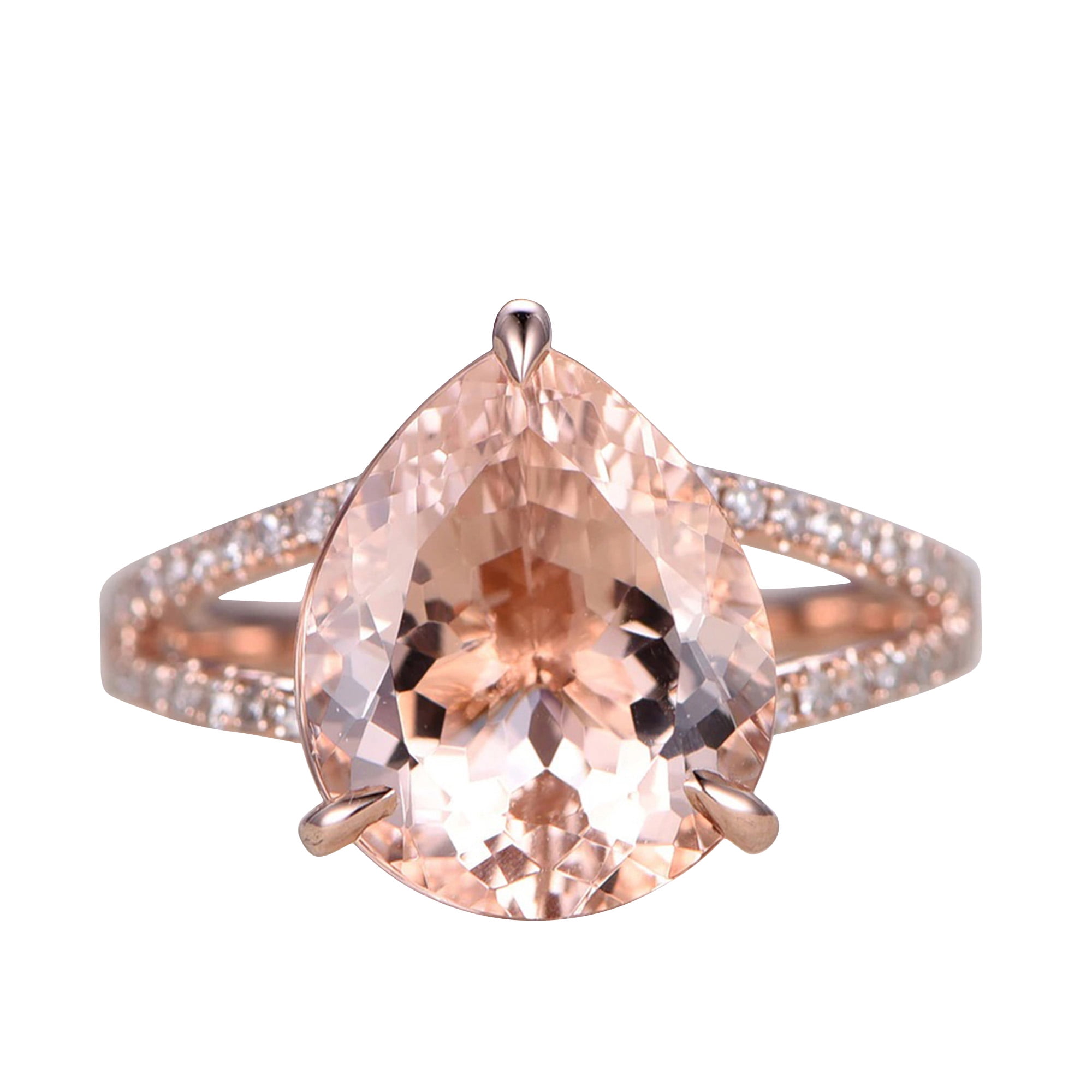 11x8mm Pear Shape 4 Carat Morganite Engagement Ring Diamond Moissanite Wedding Ring 10k Rose Gold Big Stone Split Shank Claw Prongs Walmart Com